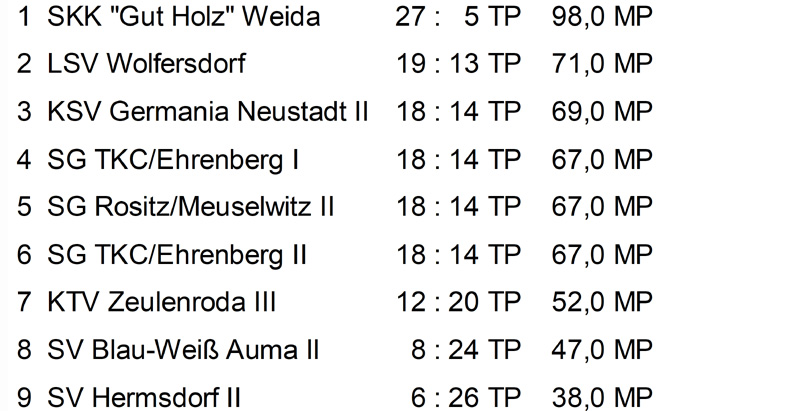Ansetzungen - Ergebnisse und Tabelle 2017
